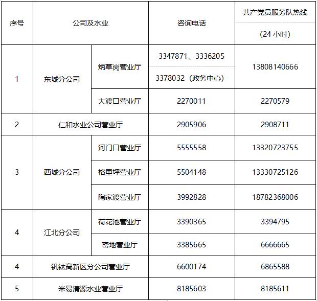 公司及水業(yè)咨詢電話及共產(chǎn)黨員服務(wù)隊(duì)電話: