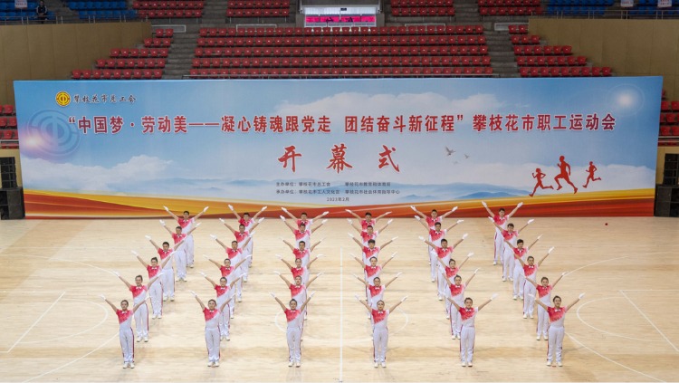 2月24日上午,由攀枝花市總工會舉辦的“中國夢·勞動美——凝心鑄魂跟黨走 團(tuán)結(jié)奮斗新征程”第一屆職工運動會在市體育館隆重開幕。集團(tuán)公司與全市各縣(區(qū))總工會、大企業(yè)工會、行業(yè)工會在9個比賽項目中同場競技、比拼實力。在開幕式當(dāng)天廣播體操比賽中,集團(tuán)公司參賽隊從12支隊伍中脫穎而出,以95.9的最高分奪得該項目的冠軍。